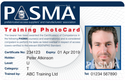 A PASMA® certificate and PhotoCard will be issued to successful delegates who successfully complete the theory and assessment sessions of their course. The PASMA® award has a five year validity period.